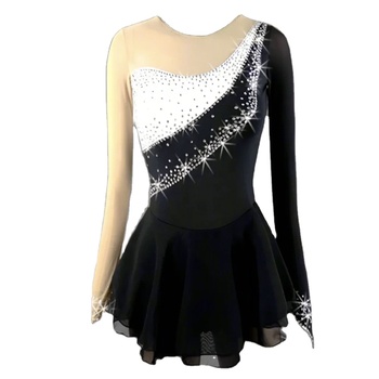 लिउहुओ आइस फिगर स्केटिंग ड्रेस महिलाओं काले स्पैन्डेक्स प्रतियोगिता प्रदर्शन प्रदर्शन